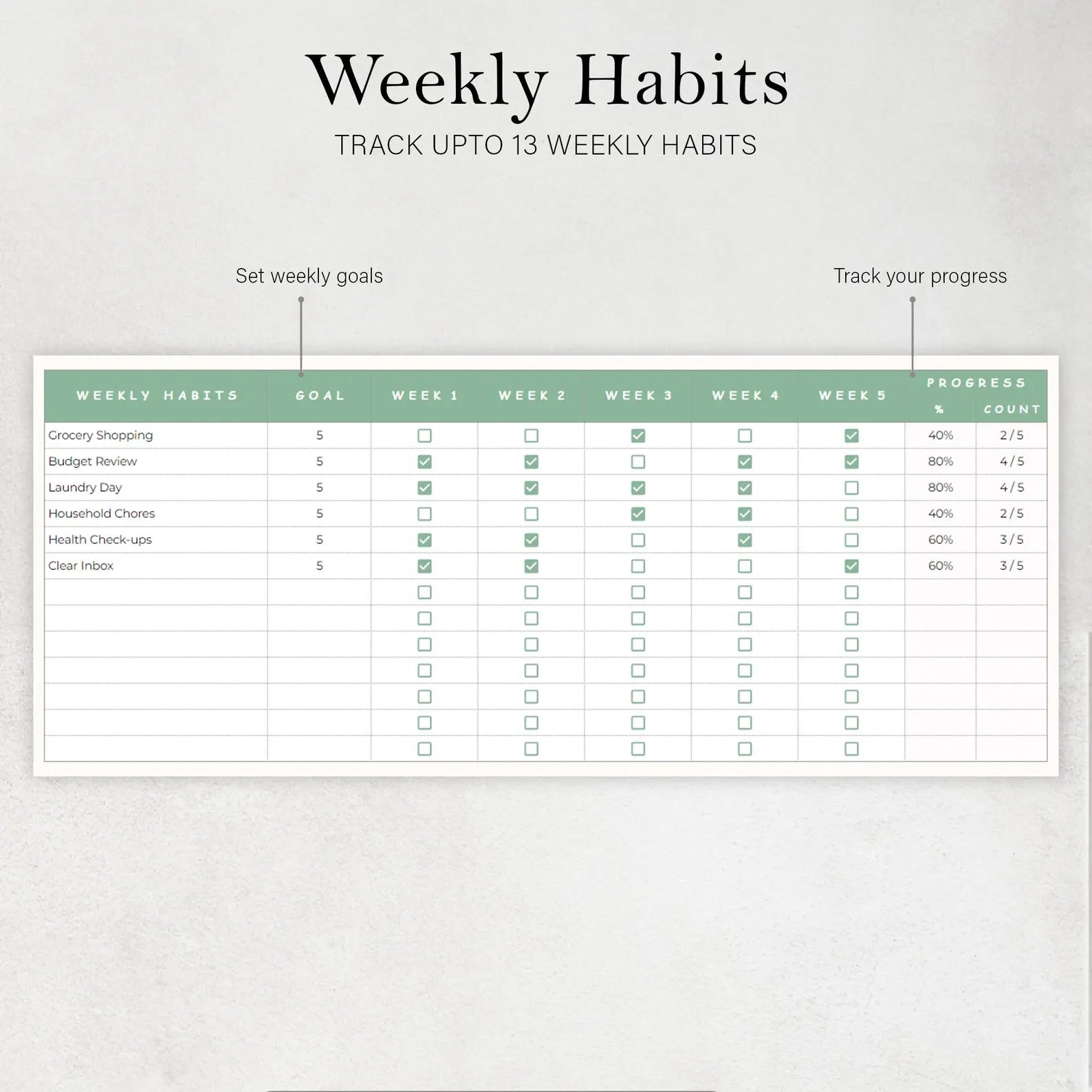 Habit Tracker Goal Tracker Digital Habit Tracker Google Sheets Daily Habit Tracker Spreadsheet Weekly Habit Tracker Template Monthly Habits
